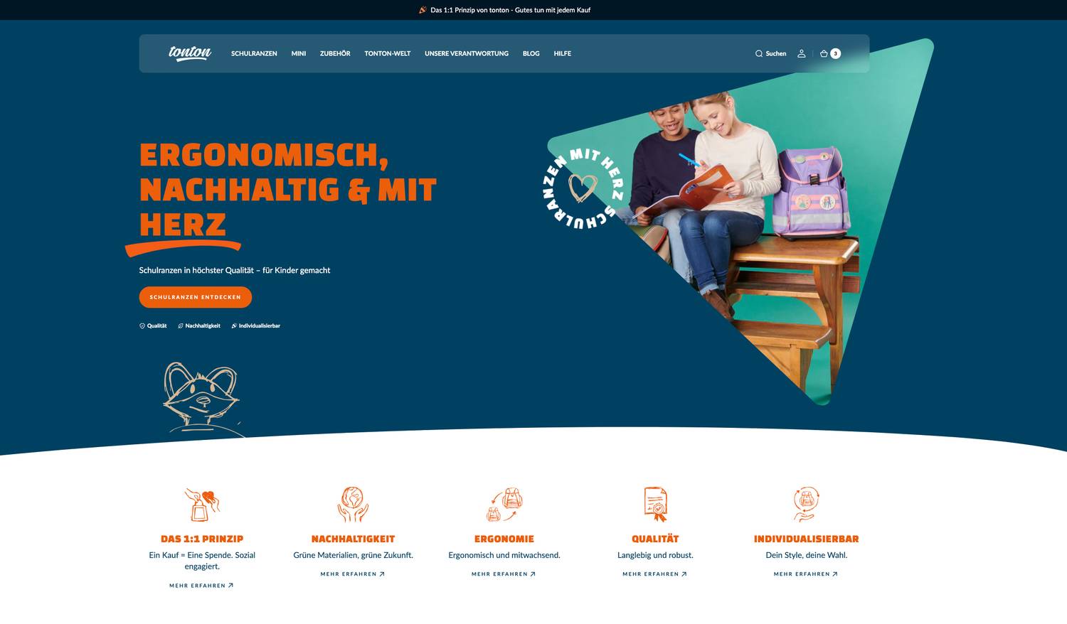 Der Schulranzen-Kauf ist ein besonderer Moment – für Kinder und Eltern gleichermaßen. Genau dieses Gefühl haben wir für tonton-Schulranzen.de in einen Shop übersetzt, der genauso verspielt und liebevoll ist wie die Marke selbst.